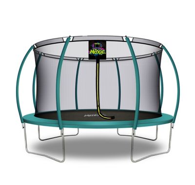 Moxie Pumpkin-Shaped Outdoor Trampoline Set with Premium Top-Ring Frame Safety Enclosure, 14 ft., Dark Green