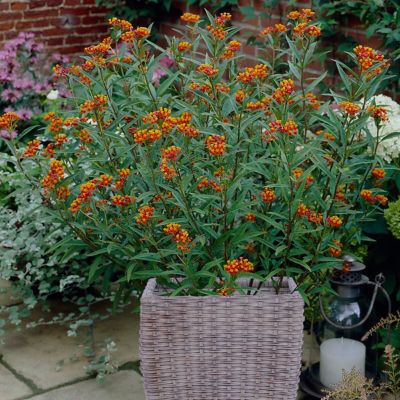 Van Zyverden Butterfly Milkweed Plant Patio Kit with Decorative Rattan Planter and Planting Medium, 3 Roots