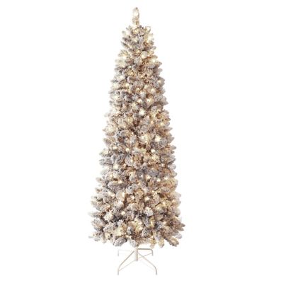 Veikous Slim Pencil Christmas Tree Snow Flocked Artificial Pre-lit with Lights and Stands