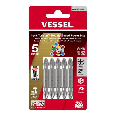 VESSEL 5 pc. PH2 x 50 mm Neck Torsion Double-Ended Power Bit Set, Card