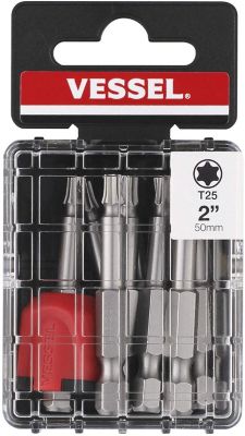 VESSEL 10 pc. T25 x 50 mm Neck Torsion Power Bit Set with Mag Enhancer, Case