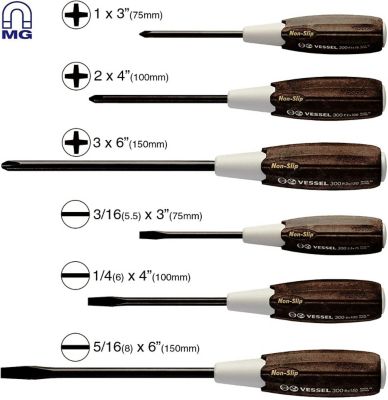 VESSEL Wood-Compo Non-Slip Screwdriver, 6 pc. Set, Clam Shell