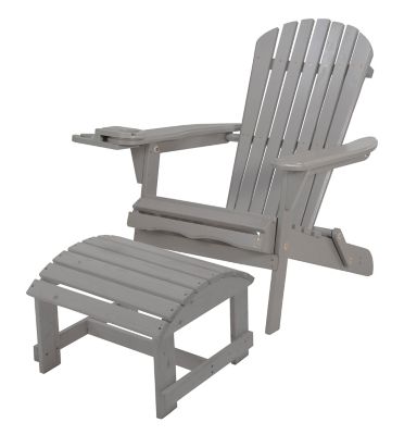 W Unlimited Foldable Adirondack Chair with Cup Holders with Ottoman