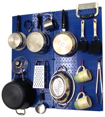 Wall Control Industrial Metal Pegboard Kitchen Organizer Kit, 32 in. x 32 in., Blue/Red