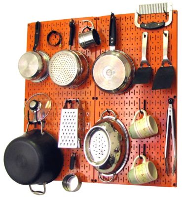 Wall Control Industrial Metal Pegboard Kitchen Organizer Kit, 32 in. x 32 in., Orange/Black