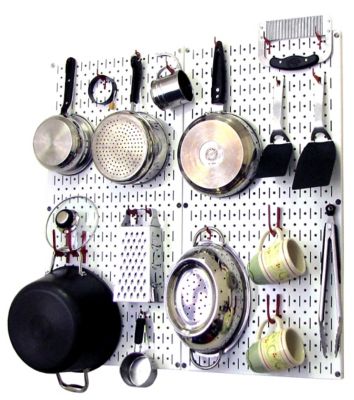 Wall Control Industrial Metal Pegboard Kitchen Organizer Kit, 32 in. x 32 in., White/Red
