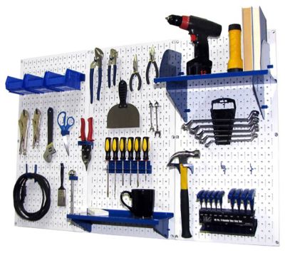 Wall Control 32 in. x 48 in. Industrial Metal Pegboard Standard Tool Storage Kit, White/Blue
