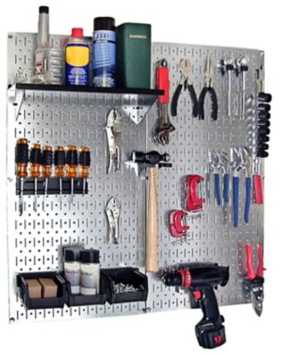 Wall Control 32 in. x 32 in. Industrial Metal Pegboard Utility Tool Storage Kit, Galvanized Steel/Black