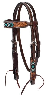 Weaver Equine Turquoise Cross Pony Leather Browband Headstall, 5/8 in.