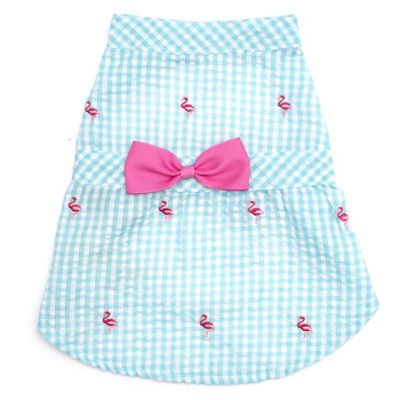 Worthy Dog Embroidered Flamingos Gingham Check Adjustable Pet Dress