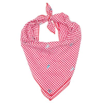 Worthy Dog Gingham Chomp Embroidered Sharks Classic Square Tie-On Pet Bandana