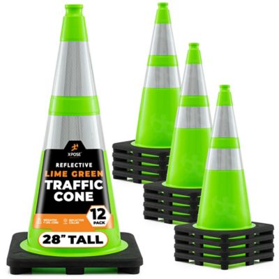 Xpose Safety 12 Pack 6 in. and 4 in. Collar PVC Multi-Purpose Safety Traffic Cone Lime Green 28 in.