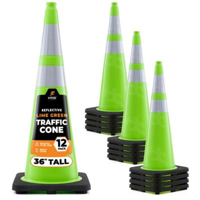 Xpose Safety 12 Pack 6 in. and 4 in. collar PVC Multi-Purpose Safety Traffic Cone Lime Green 36 in.