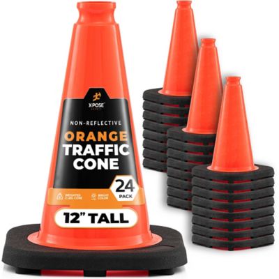 Xpose Safety 24 Pack PVC Multi-Purpose Safety Traffic Cone Orange 12 in.