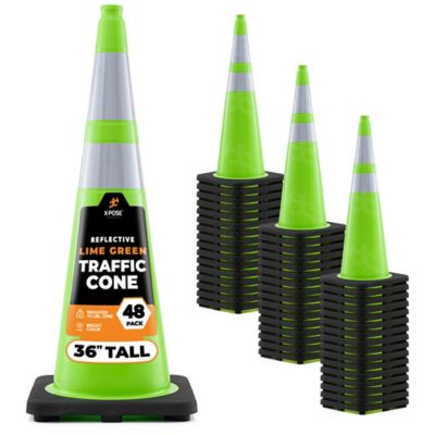Xpose Safety 48 Pack 6 in. and 4 in. Collar PVC Multi-Purpose Safety Traffic Cone Lime Green 36 in.