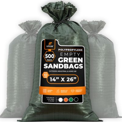 Xpose Safety 500 Packs Polypropylene 50 lbs Green Sand Bags 14 in. x 26 in.