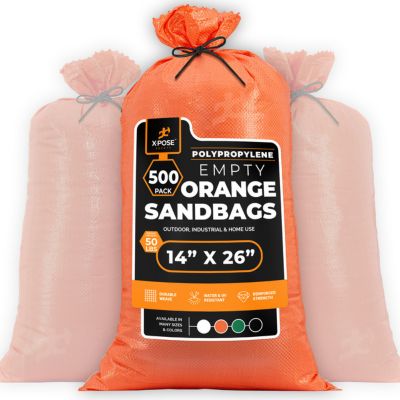 Xpose Safety 500 Packs Polypropylene 50 lbs Orange Sand Bags 14 in. x 26 in.