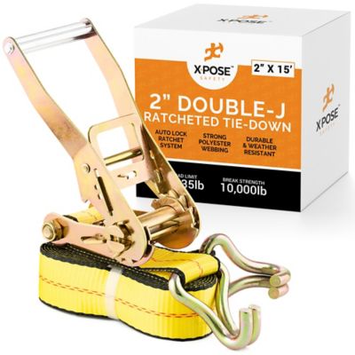 Xpose Safety Heavy Duty Ratchet Straps with Double J Hooks Yellow 2 in. x 15 foot
