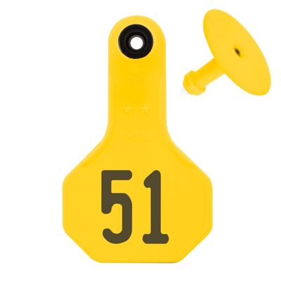 Y-TEX Numbered All-American ID Cattle Tags, 2 pc., 051-075, Small, Yellow, 25-Pack