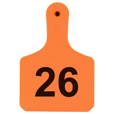 Y-TEX Numbered Calf Y-Tags, 1 pc., 026-050, Orange, 25-Pack